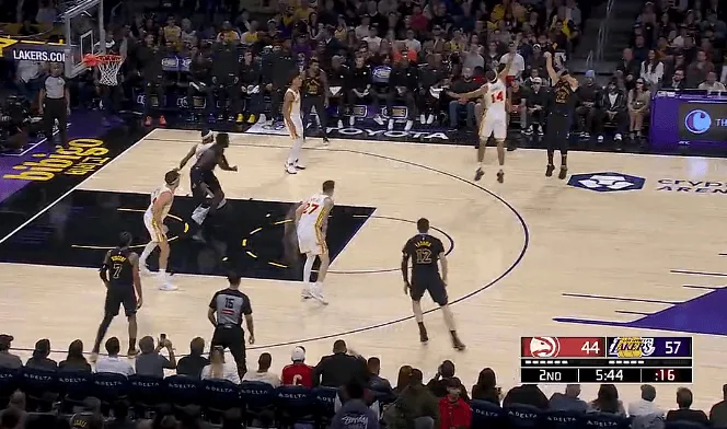 虎扑01月14日讯 NBA常规赛,湖人对阵老鹰的比赛正在进行中。